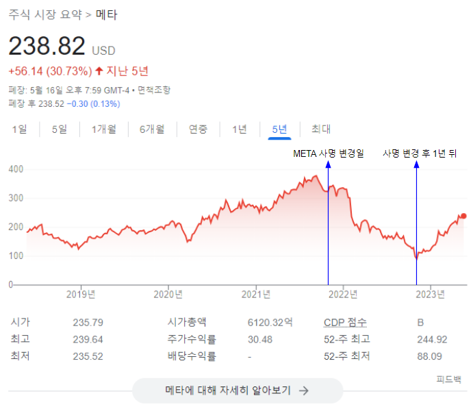 - 사명 변경 1년 뒤 주가 : $90.79 (22.10.28 기준)