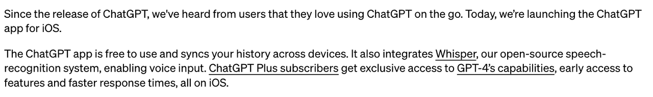 2) ChatGPT Plus 사용자에게 GPT-4를 App에서도 제공